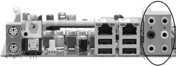 Кроме того, некоторые современные материнские платы оснащаются многоканальными звуковыми платами, имеющими не три, а шесть выходов. Пример такой платы вы можете видеть на рис. 2.2.