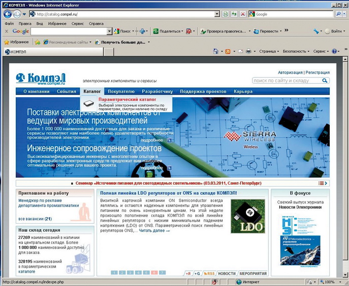 Для параметрического поиска на сайте CATALOG.COMPEL.RU сначала надо зайти в меню «Каталог» и выбрать закладку «Параметрический каталог» (см. рис. 1).